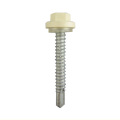 頭部の材質はガラス繊維入り高強度エンジニアリングプラスチックで、 耐候性(酸性雨など)・ 耐食性・耐薬品性に優れています。雨や雪などから建材を守り、防錆効果抜群で、臨海工業地帯にも最適です。またカラー鋼板にも色合わせが可能で、美観にも役立ちます。 六角頭部はセルフドリリングタッピングスクリューと同じ寸法なので 標準工具(六角ビット)が使用できます。