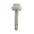 頭部の材質はガラス繊維入り高強度エンジニアリングプラスチックで、 耐候性(酸性雨など)・ 耐食性・耐薬品性に優れています。雨や雪などから建材を守り、防錆効果抜群で、臨海工業地帯にも最適です。またカラー鋼板にも色合わせが可能で、美観にも役立ちます。 六角頭部はセルフドリリングタッピングスクリューと同じ寸法なので 標準工具(六角ビット)が使用できます。